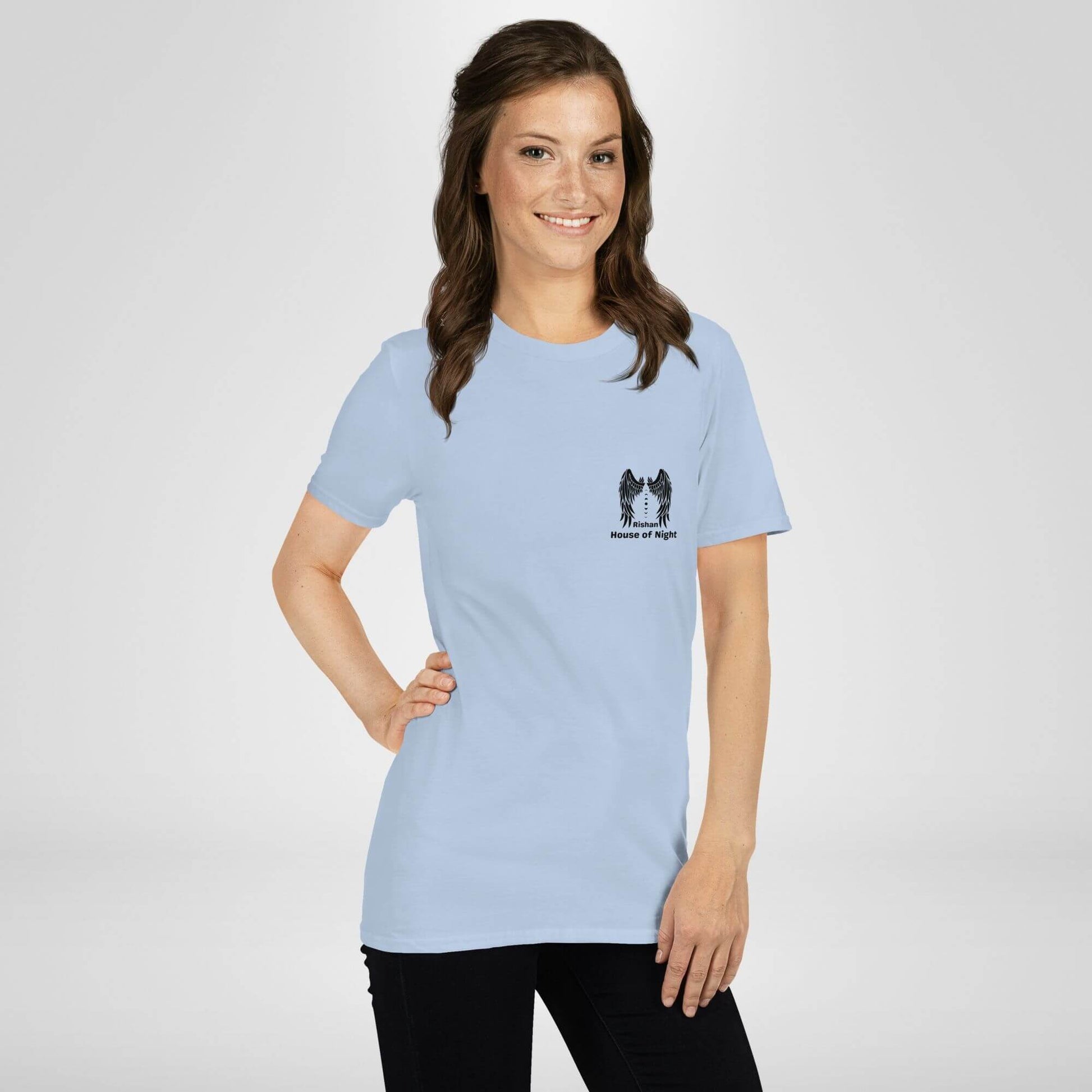 Leva a Casa da Noite para o quotidiano com a t-shirt Rishan – Nyaxia. Mais do que roupa, é um sinal discreto de pertença a um clã que vive entre sombras, conhecido pela astúcia, pela sede de poder e pela beleza que pode ser tão letal como sedutora.